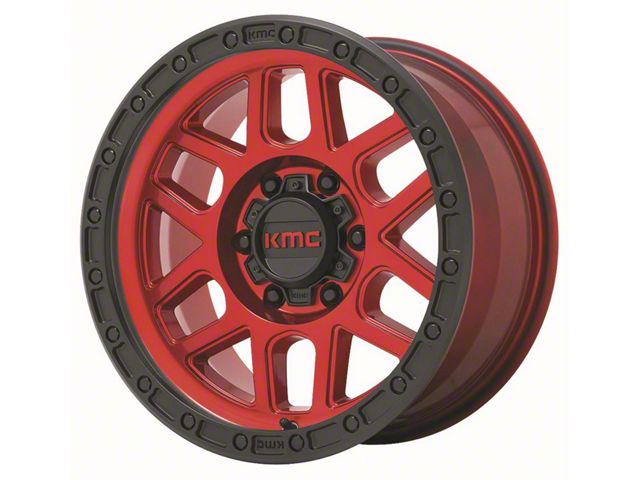 KMC Mesa Candy Red with Black Lip 6-Lug Wheel; 18x9; 18mm Offset - Enhance your vehicle's style with the KMC wheel. This wheel's distinctive design and finish complement your vehicle's aesthetics, making a bold statement. It's crafted to accentuate the unique character of your car, emphasizing a premium and robust appeal.