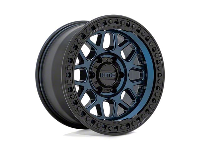 KMC GRS Midnight Blue with Gloss Black Lip 6-Lug Wheel; 18x8.5; 0mm Offset is a perfect blend of style and rugged design, making it a standout choice for those looking to enhance their vehicle's aesthetic appeal. Its bold, dark metallic finish pairs seamlessly with a wide variety of vehicle styles, offering both modernity and durability. Built by KMC, this wheel is designed to elevate your vehicle's appearance with its robust presence.