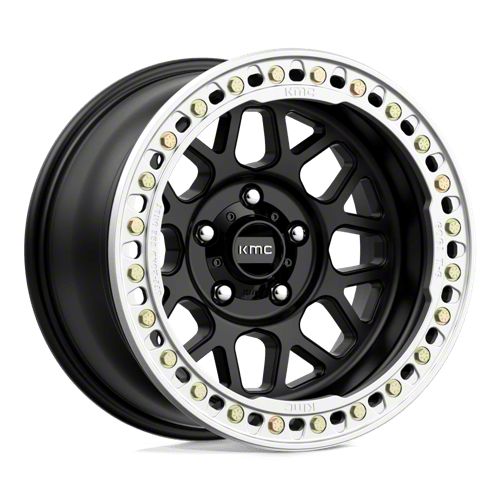 KMC Grenade Crawl Beadlock Satin Black 6-Lug Wheel; 17x8.5; 0mm Offset. The KMC Grenade Crawl Beadlock Satin Black 6-Lug Wheel; 17x8.5; 0mm Offset features a sleek and modern design that enhances the overall aesthetic of any vehicle. Its brushed gunmetal finish adds a touch of sophistication and complements various vehicle styles. This wheel's premium construction ensures durability and a robust appearance.