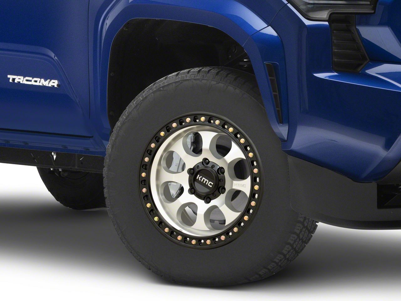 Application. This KMC Riot SBL Machined with Satin Black Lip 6-Lug Wheel; 17x8.5; 10mm Offset, with a backspacing of 5.144 Inch, 130.7mm and bolt pattern of 6 x 139.7mm (6 x 5.5-Inch), is designed to fit the 2024-2026 Tacoma models, sold individually.