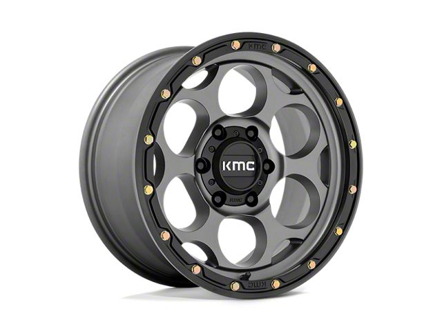 KMC Dirty Harry Satin Gray with Black Lip 6-Lug Wheel; 17x8.5; 0mm Offset is a perfect blend of style and rugged design, making it a standout choice for those looking to enhance their vehicle's aesthetic appeal. Its bold, dark metallic finish pairs seamlessly with a wide variety of vehicle styles, offering both modernity and durability. Built by KMC, this wheel is designed to elevate your vehicle's appearance with its robust presence.