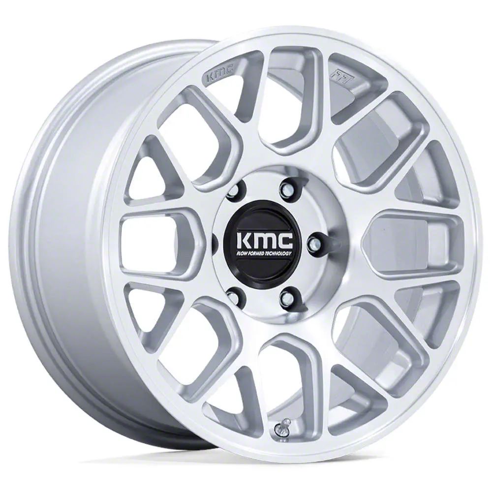 The 17x8.5 KMC Hatchet Gloss Silver with Machined Face Wheel is completed in a gloss silver finish with accents for an impressive appearance. For added protection and looks, there's a durable clear coat that withstands the hazards of everyday driving.