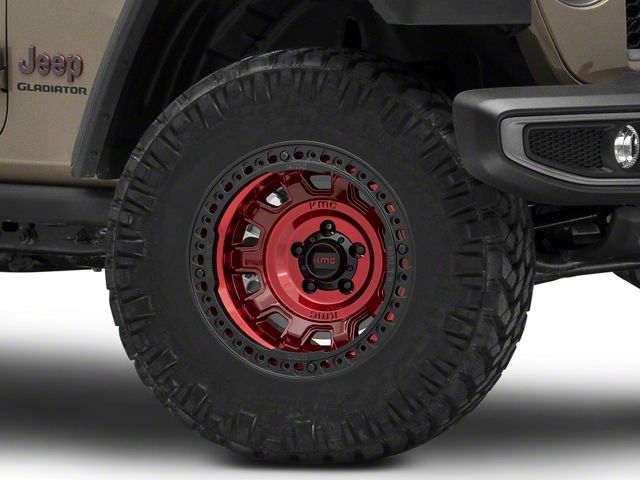 KMC Tank Beadlock Candy Red Wheel; 17x9 The KMC Tank Beadlock Candy Red Wheel combines a sleek, sophisticated design with premium construction that enhances the visual appeal and complements a wide range of vehicle styles. This wheel is perfect for those seeking to make a bold statement while maintaining elegance and robustness.