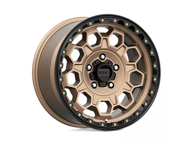KMC Trek Matte Bronze with Black Lip Wheel; 17x9; 18mm Offset is a perfect blend of style and rugged design, making it a standout choice for those looking to enhance their vehicle's aesthetic appeal. Its bold, dark metallic finish pairs seamlessly with a wide variety of vehicle styles, offering both modernity and durability. Built by KMC, this wheel is designed to elevate your vehicle's appearance with its robust presence.