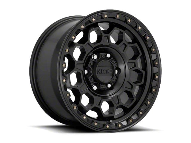 KMC Trek Satin Black Wheel; 17x9 exudes a captivating aesthetic appeal that seamlessly complements various vehicle styles. The craftsmanship of KMC ensures a robust and premium feel, making it a standout choice for discerning drivers.