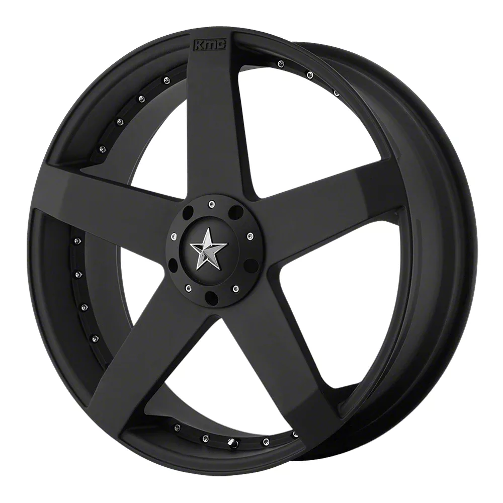 KMC Rockstar Car Matte Black Wheel; 17x7.5 The KMC Rockstar Car Matte Black Wheel combines a sleek, sophisticated design with premium construction that enhances the visual appeal and complements a wide range of vehicle styles. This wheel is perfect for those seeking to make a bold statement while maintaining elegance and robustness.