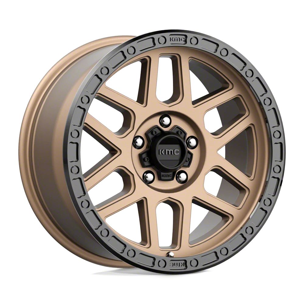 KMC Mesa Matte Bronze with Black Lip Wheel; 18x9 The KMC Mesa Matte Bronze with Black Lip Wheel combines a sleek, sophisticated design with premium construction that enhances the visual appeal and complements a wide range of vehicle styles. This wheel is perfect for those seeking to make a bold statement while maintaining elegance and robustness.