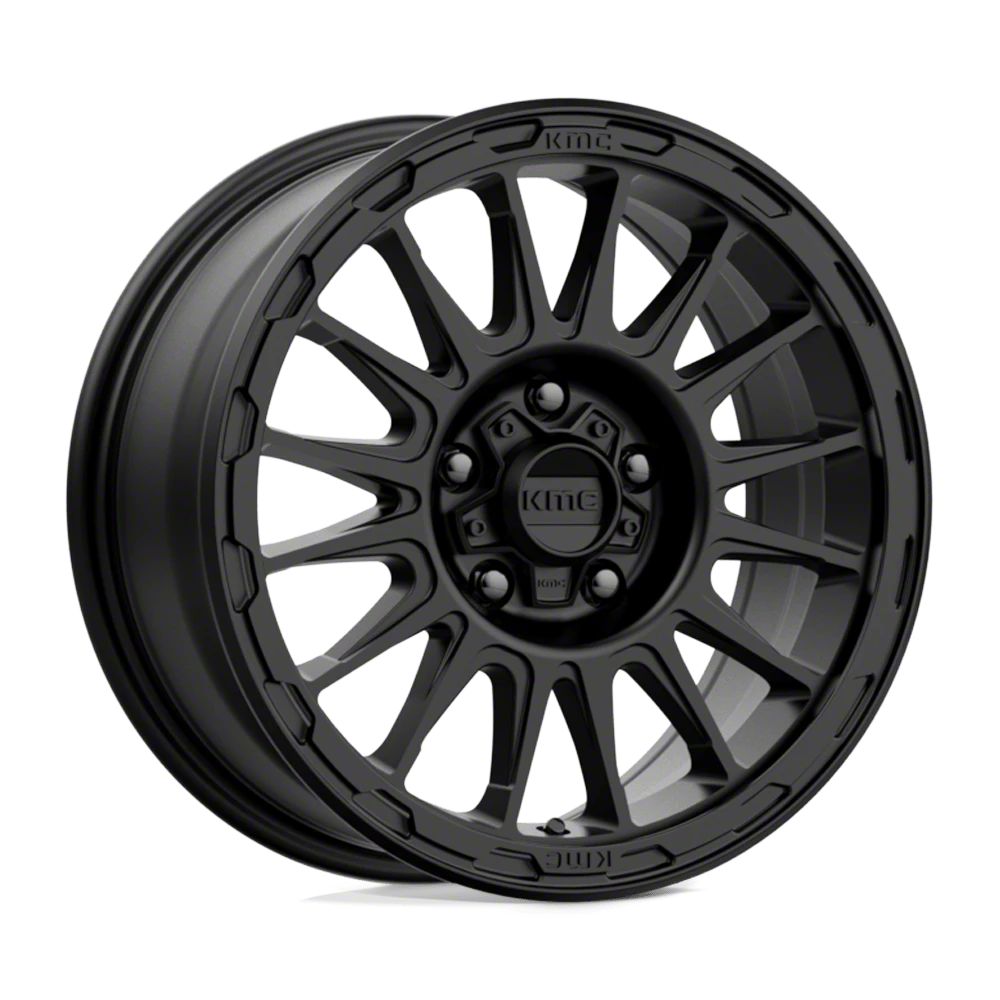 KMC Impact Satin Black Wheel; 16x7 The KMC Impact Satin Black Wheel combines a sleek, sophisticated design with premium construction that enhances the visual appeal and complements a wide range of vehicle styles. This wheel is perfect for those seeking to make a bold statement while maintaining elegance and robustness.