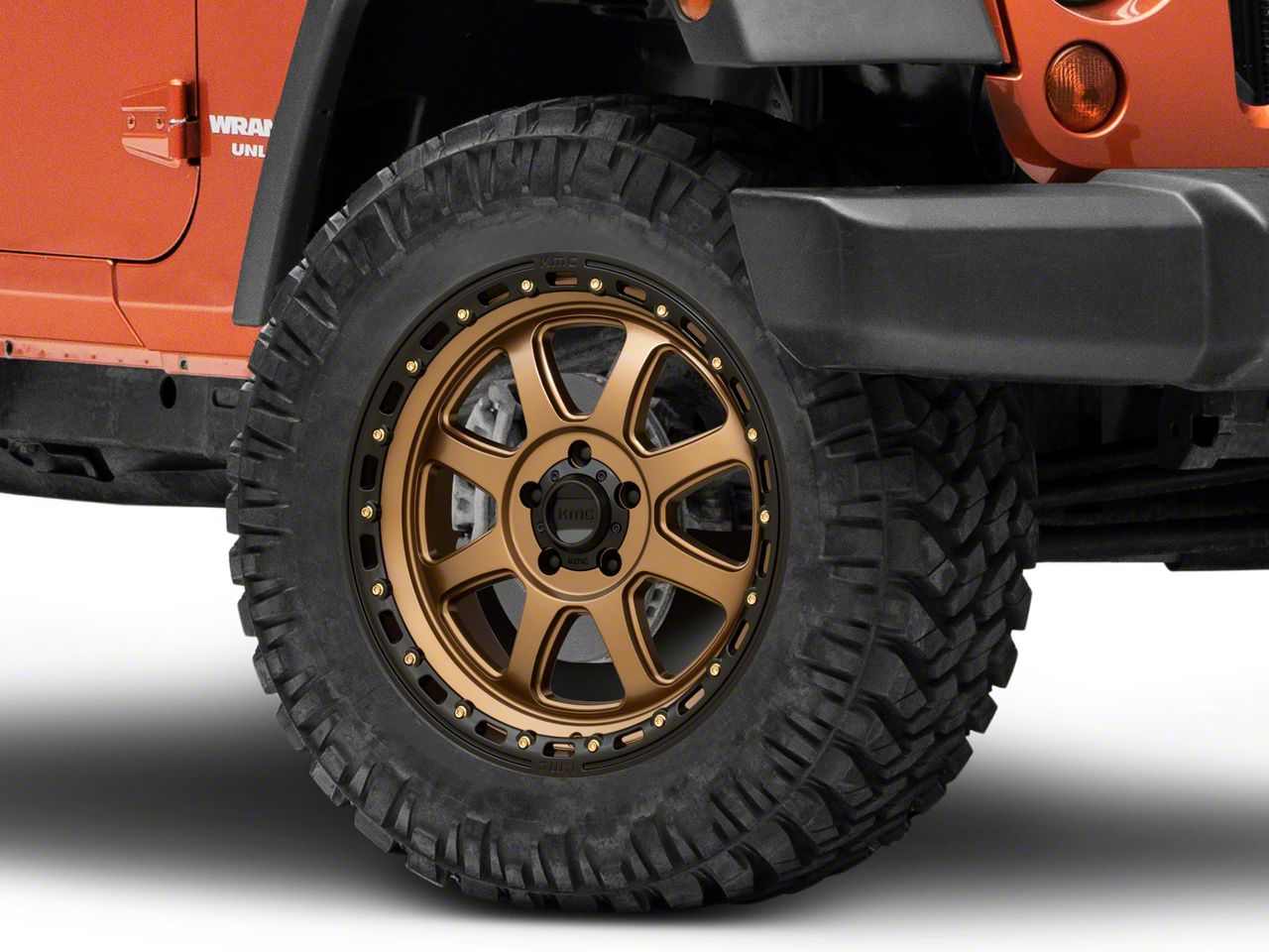 Application. This KMC Chase Matte Bronze with Black Lip Wheel; 20x9 with a backspace of 5.709 Inch, 145.1mm and bolt pattern of 5 x 127mm (5 x 5-Inch) ensures impeccable alignment and unmatched driving stability. Specifically designed for 07-18 Jeep Wrangler JK models, each wheel is sold individually.