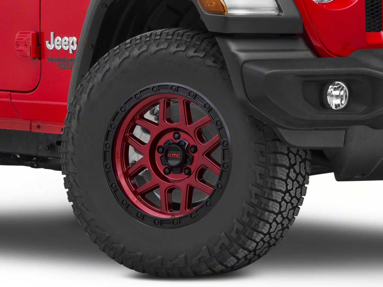 ExtremeTerrain no longer carries the KMC Mesa Candy Red with Black Lip Wheel; 17x9; 18mm Offset (18-26 Jeep Wrangler JL). Please check out Jeep CJ7 Wheels & Tires for 1976-1986 Wrangler for an updated selection.
