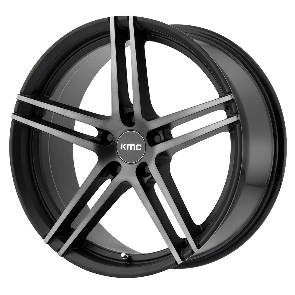 KMC Monophonic Satin Black with Titanium Black Face Wheel; 20x10 The KMC Monophonic Satin Black with Titanium Black Face Wheel combines a sleek, sophisticated design with premium construction that enhances the visual appeal and complements a wide range of vehicle styles. This wheel is perfect for those seeking to make a bold statement while maintaining elegance and robustness.