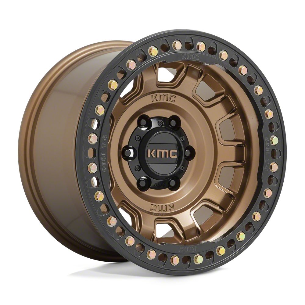 KMC Tank Beadlock Matte Bronze Wheel; 17x9: Redefine your vehicle's style with the KMC Tank Beadlock Matte Bronze Wheel. This wheel's elegant design and striking finish embody a blend of sophistication and boldness, perfectly complementing a wide array of vehicle aesthetics. Crafted from high-quality materials, it's a testament to durability and style.
