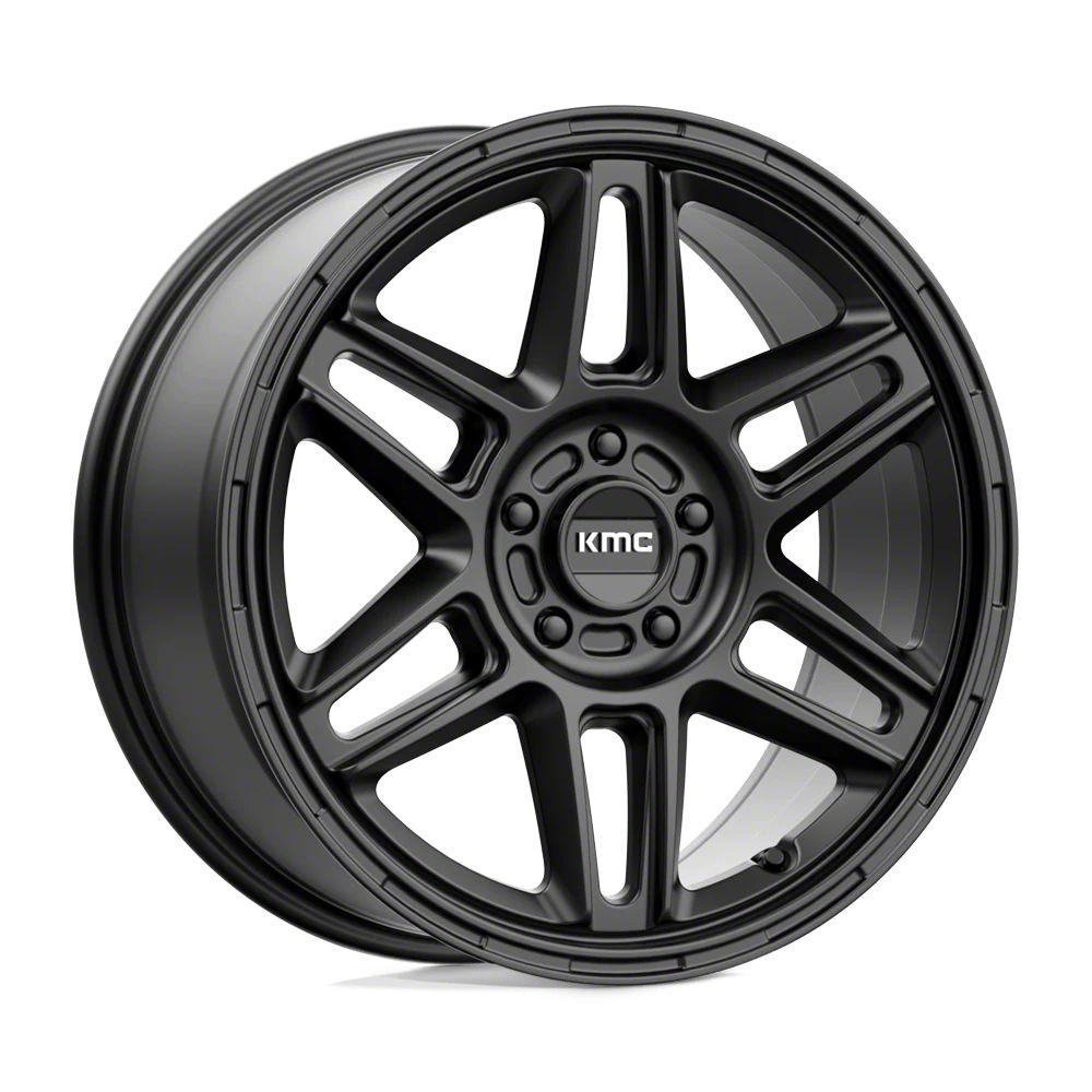 KMC Nomad Satin Black Wheel; 18x8 The KMC Nomad Satin Black Wheel combines a sleek, sophisticated design with premium construction that enhances the visual appeal and complements a wide range of vehicle styles. This wheel is perfect for those seeking to make a bold statement while maintaining elegance and robustness.
