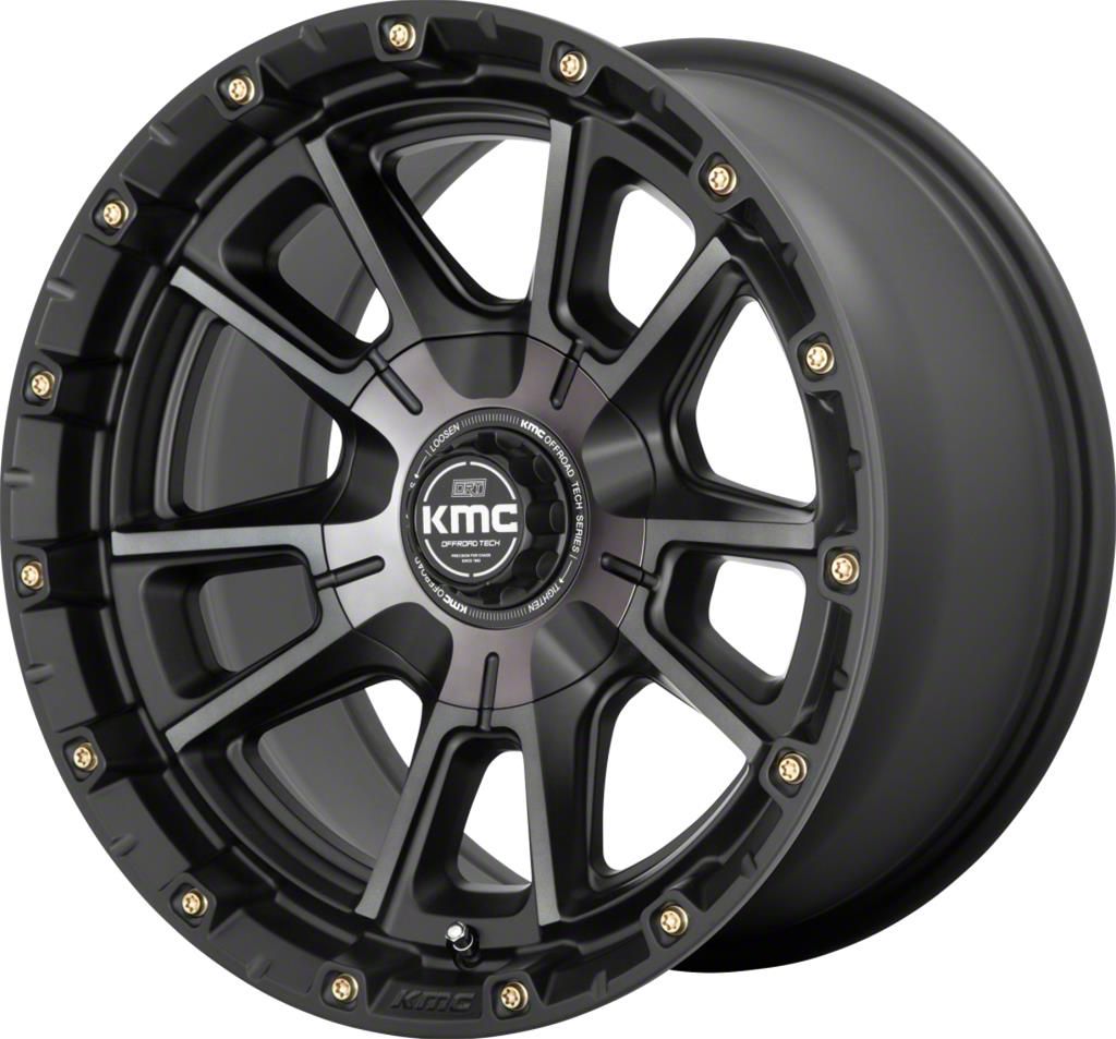 KMC Sync Satin Black with Gray Tint 6-Lug Wheel; 17x9; 0mm Offset - Experience the sleek elegance of the KMC wheel. Its matte black finish adds a touch of sophistication to your vehicle, enhancing its overall appearance without compromising on durability. Perfect for a variety of vehicle styles, this wheel is a testament to the brand's commitment to quality and aesthetic excellence.