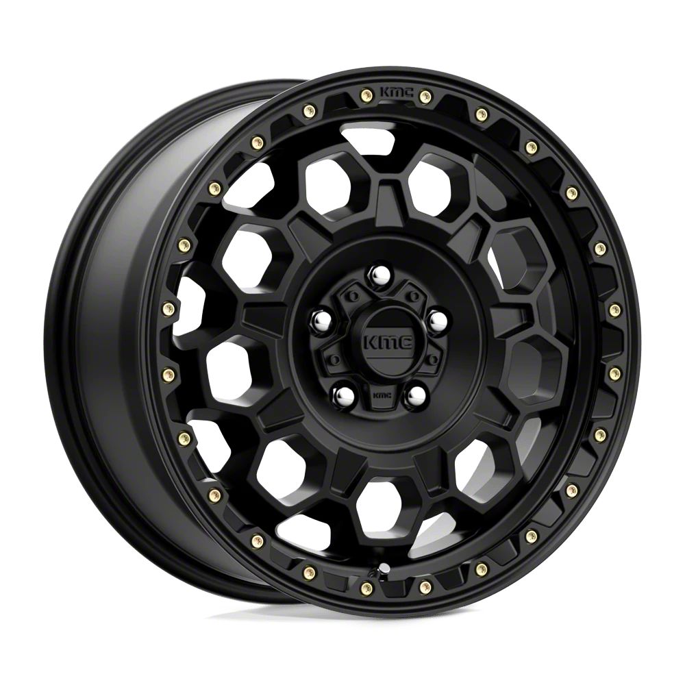 KMC Trek Satin Black 6-Lug Wheel; 17x9; -12mm Offset The KMC Trek Satin Black 6-Lug Wheel combines a sleek, sophisticated design with premium construction that enhances the visual appeal and complements a wide range of vehicle styles. This wheel is perfect for those seeking to make a bold statement while maintaining elegance and robustness.