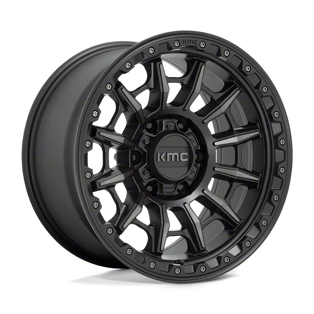 KMC Carnage Satin Black with Gray Tint 5-Lug Wheel; 17x9; 0mm Offset is a perfect blend of style and rugged design, making it a standout choice for those looking to enhance their vehicle's aesthetic appeal. Its bold, dark metallic finish pairs seamlessly with a wide variety of vehicle styles, offering both modernity and durability. Built by KMC, this wheel is designed to elevate your vehicle's appearance with its robust presence.
