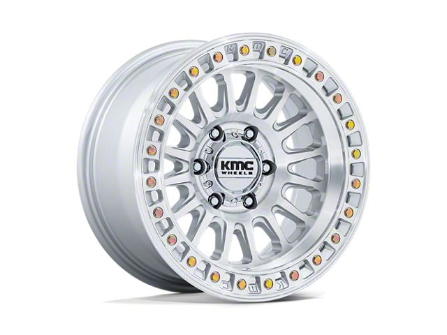 KMC IMS Gloss Silver with Machined Face 6-Lug Wheel; 20x9; 0mm Offset is a perfect blend of style and rugged design, making it a standout choice for those looking to enhance their vehicle's aesthetic appeal. Its bold, dark metallic finish pairs seamlessly with a wide variety of vehicle styles, offering both modernity and durability. Built by KMC, this wheel is designed to elevate your vehicle's appearance with its robust presence.