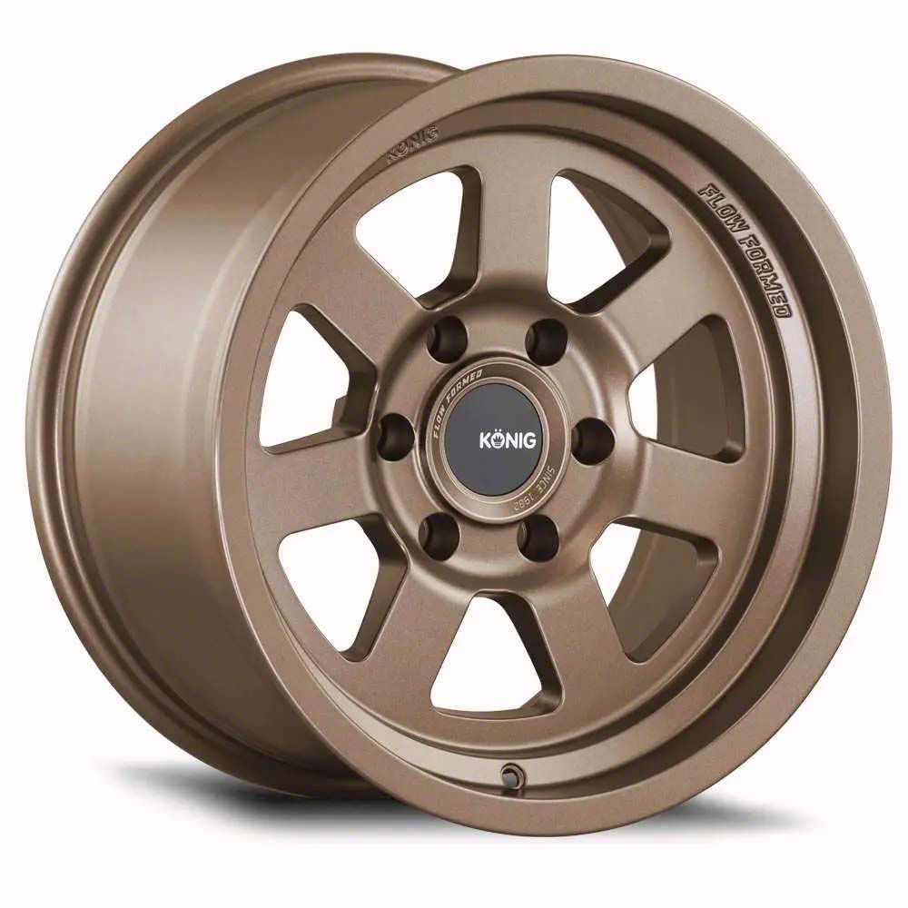 The 18x9 Konig HT2 Satin Bronze 6-Lug Wheel is completed in a high-quality bronze finish that will be the envy of everyone. For added protection and good looks, there is a durable clear coat that handles the rigors of daily driving.