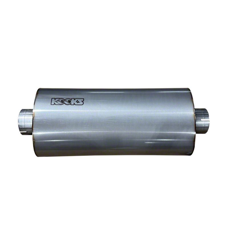 Kooks 18-Inch Polished Stainless Steel Center/Center Oval Clamp-In Muffler; 3-Inch Inlet/3-Inch Outlet (Universal; Some Adaptation May Be Required)