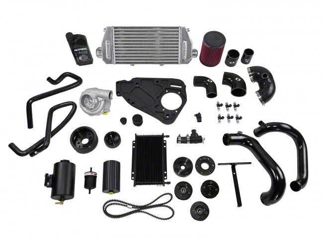 System Includes. Standard-issue with each kit is a large, front-mount intercooler to help ensure low intake air temperatures for optimal performance: all necessary aluminum tubing, silicone couplers, and clamps. Proper air/fuel ratios are ensured with the included Grams Performance 52lb/hr fuel Injectors, and an optional engine management system. Convenient, plug-and-play fuel injector adapters are also included, making each kit a true bolt-on experience. Custom dyno tuning is required for operation.
