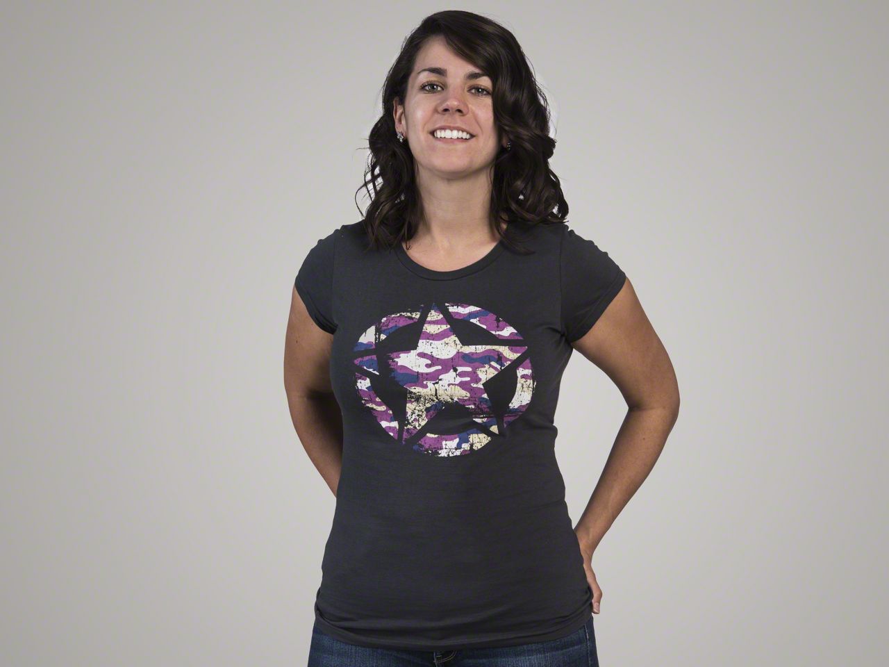 Makes a Great Gift. Finding something unique and different to give your favorite Jeep loving lady can be difficult at times. This dark charcoal t-shirt with it's multi-colored camo star will surely make a great present for yourself or the fellow Wrangler enthusiast in your life.