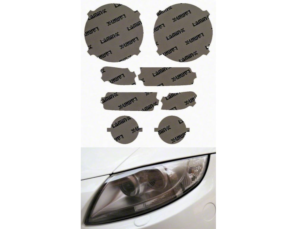 Our headlight films are made from impact-resistant 12 mil protective film with adhesive-backing to protect your lights from cloudiness that occurs over time and road debris. The adhesive on our films are designed to be extremely forgiving. You can apply numerous times during initial application to get the installation right. These precut kits cover both sides and also include the lower lights.