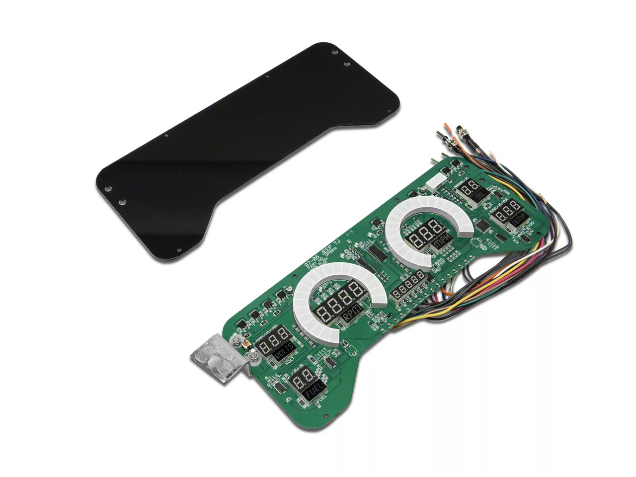 Digital Blue LED Gauge Panel. Update your 1997-2006 TJ Wrangler's interior with this eye-catching and functional Blue LED Digital Gauge Panel. This Gauge Panel boasts bright blue LED illumination and a dark smoked Plexiglas faceplate for impressive good looks. With its sleek, futuristic design you can't but marvel at your dashboard every time you start your engine.