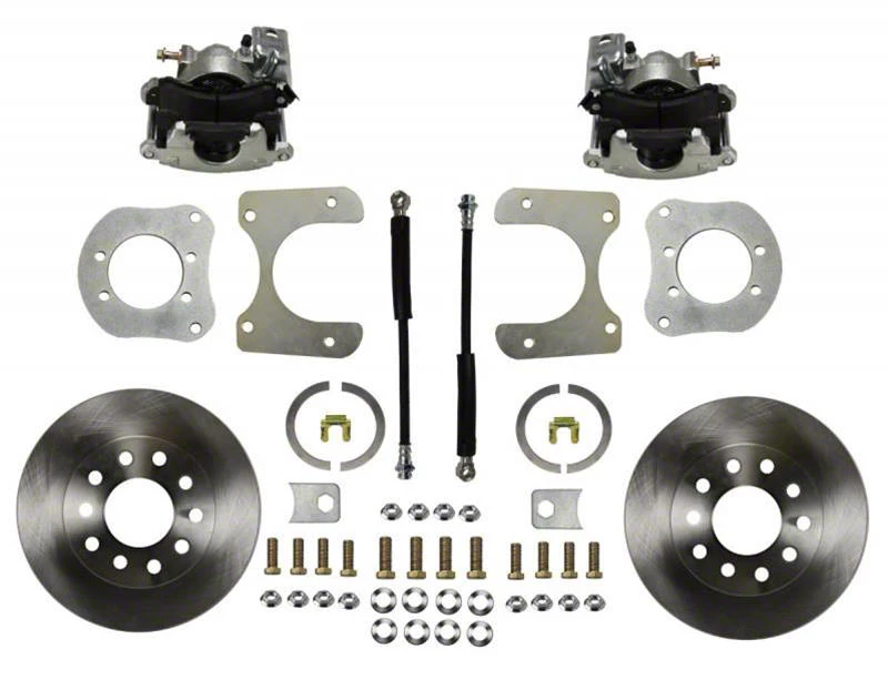 Add the safety, reliability and performance of rear disc brakes to your JEEP with our drum to disc brake conversion. In this kit you will receive everything you need to mount single piston disc brakes to your rear axle. All components used in the LEED Brakes kits are new high quality, precision machined products with a zinc plated finish to reduce corrosion and extend the life of your brake system. The large 63.5mm piston along with the semi-metallic brake pads provided will give you all the clamping force and braking you need. The heavy duty parking brake caliper will allow you to use most stock and aftermarket parking brake cables to actuate your parking brake. Note: Fits Dana 35 C-clip axles only. Note: Will not work with factory ABS sensors. Note: Only fits Dana 44 in 1997-06 Wrangler.