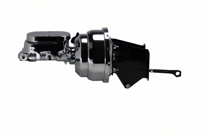 New 8" Dual Diaphragm chrome plated power brake booster kit. This 8" power booster is hand polished before a chrome finish is applied for a top quality finish. The booster mounting brackets are a direct fit to your factory firewall. Also Included in this kit is a new 1" bore master cylinder perfect for most front disc /rear drum or 4 wheel disc brake applications.