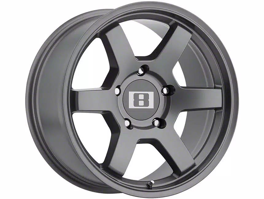 Level 8 Wheels MK6 Matte Gunmetal 6-Lug Wheel; 16x8; -10mm Offset exudes sophistication with its finish, offering a sleek and modern appeal to any vehicle it adorns. The design is meticulously crafted to enhance the aesthetic of your vehicle, giving it a distinctive and upscale look. Perfect for those seeking to elevate their vehicle's style, this wheel blends seamlessly with both contemporary and classic vehicle designs, making it a versatile choice for a wide range of vehicles. Its robust construction ensures durability, making it a reliable choice for drivers who value both style and quality.