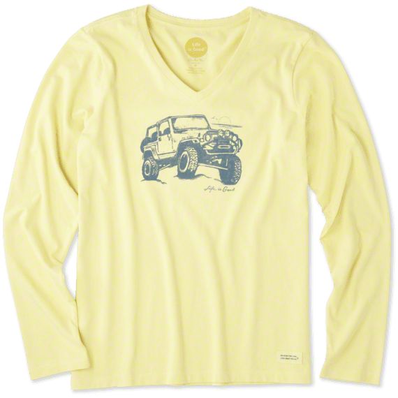 Women’s Sizes Available. You can choose from a variety of women’s sizes, ranging from Small to XXXL. This Life is Good’s Off-Road Beach Long Sleeve V-Neck Crusher T-Shirt available in a classic fit style so you’re sure to find one that’s perfect for your body size.