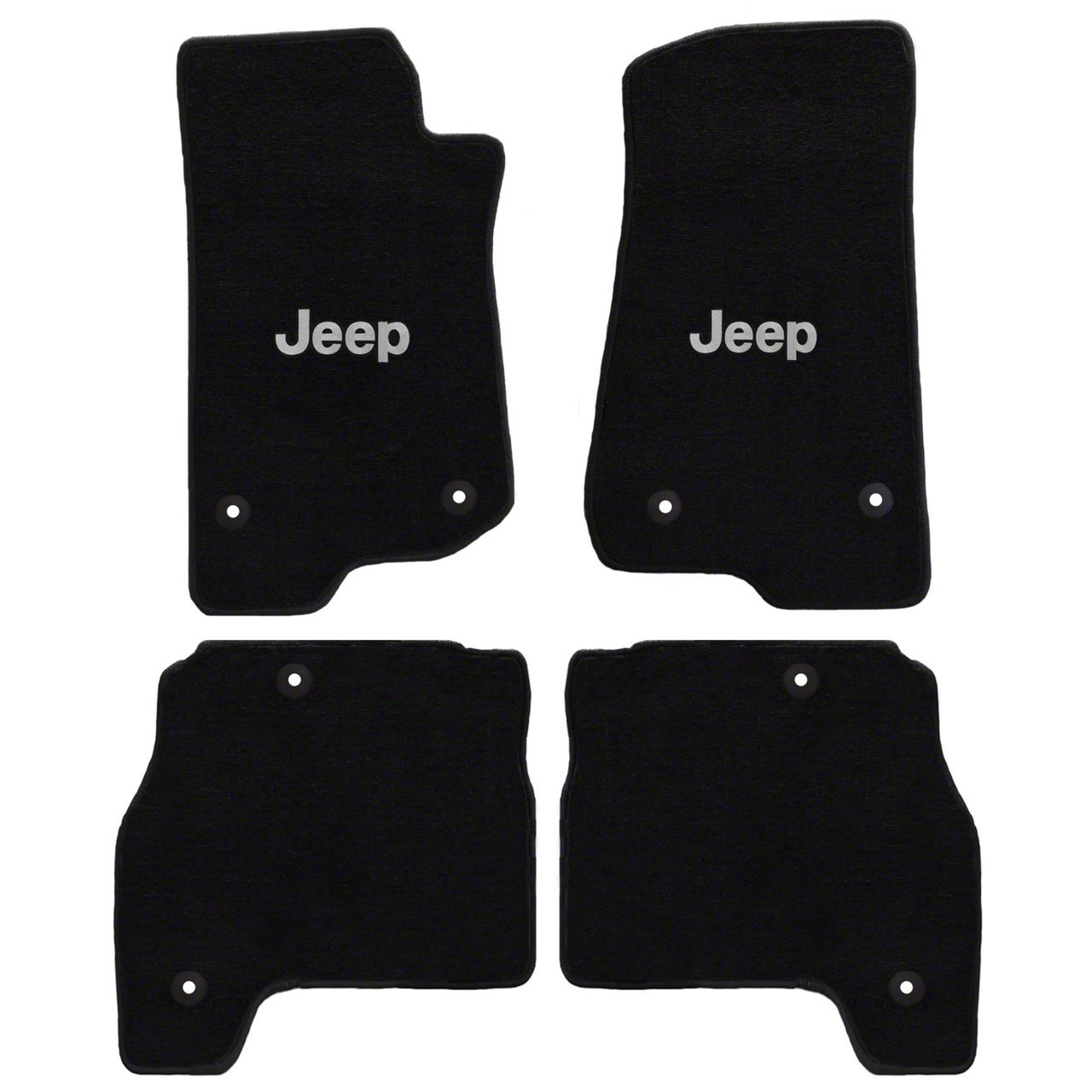 Stays Anchored to the Floor. Lloyd designed these All Weather Floor Mats with safety mat fasteners. These fasteners are compatible with your Jeep’s factory mat hooks, so you can rest assured that the mats will stay in place, no matter how many times people step on them.
