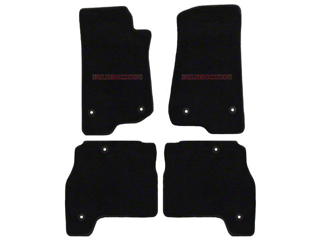 Application. These Lloyd Black All-Weather Carpet Front and Rear Floor Mats with Red and Black Rubicon Logo are intended for use on all 2020 to 2023 Jeep Gladiator JT models