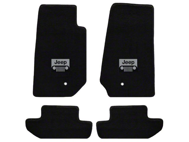 Application. These Black All Weather Carpet Front & Rear Floor Mats with Jeep Grille Logo by Lloyd are compatible with all 2007-2010 Jeep Wrangler JK 2-Door models.