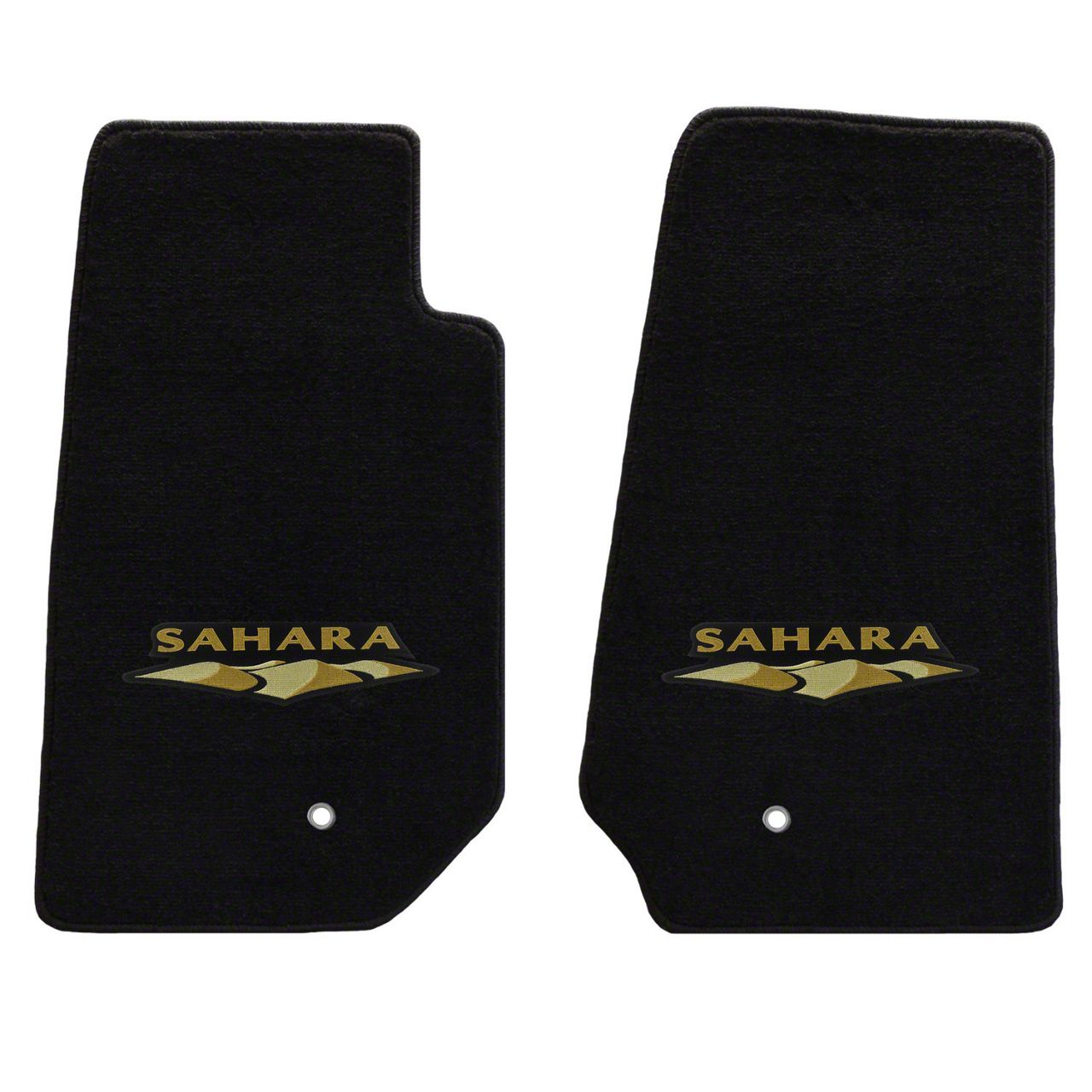 Interior Protection with a Custom Look. One stylish way to protect your Jeep Wrangler’s floor from spills, mud, and road debris is by investing in these Lloyd Black All-Weather Carpet Front Floor Mats with Tan and Black Sahara Logo. These floor mats shield your vehicle’s floor and preserve the Jeep's value by preventing scrapes, scratches, and stains. Furthermore, they are emblazoned with the tan and black Sahara logo for quality brand recognition and a custom appeal.