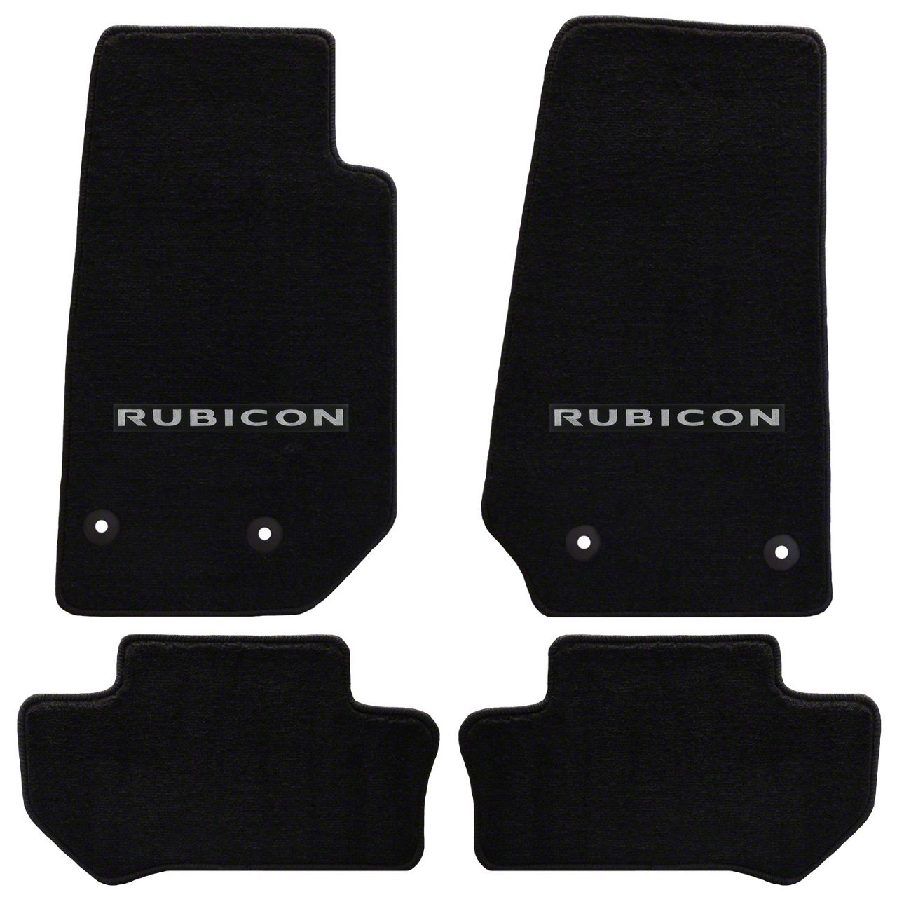 Application. These Lloyd All-Weather Black Carpet Front and Rear Floor Mats with Silver and Black Rubicon Logo fit all 2014 to 2018 Jeep Wrangler JK 2-door models.