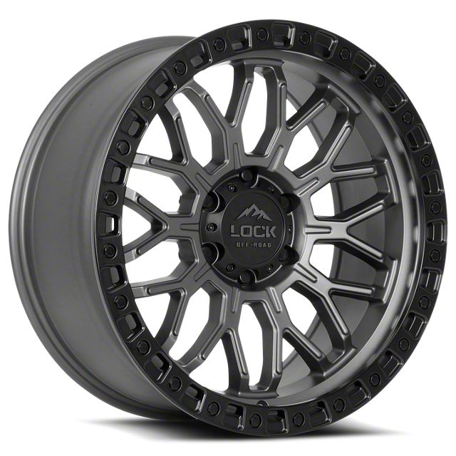 Lock Off-Road Combat Matte Grey with Matte Black Ring 6-Lug Wheel; 20x10; 18mm Offset delivers a bold and modern aesthetic, ideal for enthusiasts seeking a refined yet assertive look for their vehicle. With its standout design and distinct finish, this wheel enhances the vehicle's visual stance and street presence. The precise craftsmanship and premium aluminum build reflect Lock Off-Road's dedication to quality and distinctive design. Whether parked or in motion, this wheel draws attention with its clean, aggressive styling.