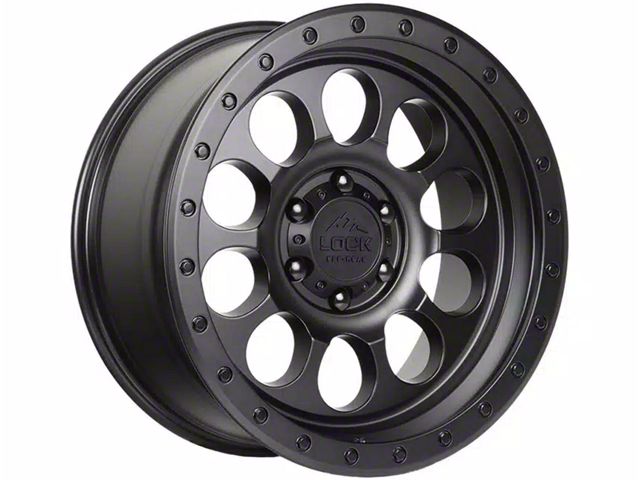 Lock Off-Road 50Cal Matte Black with Matte Black Ring 6-Lug Wheel; 17x9; -12mm Offset. Enhance your vehicle's look with the Lock Off-Road 50Cal Matte Black with Matte Black Ring 6-Lug Wheel. This premium wheel adds a touch of elegance and class to your vehicle, complementing its sophisticated aesthetic.