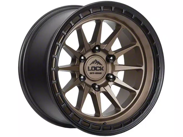 Lock Off-Road Baja Matte Desert Bronze with Matte Black Ring 6-Lug Wheel; 17x9; 0mm Offset exudes a captivating aesthetic appeal that seamlessly complements various vehicle styles. The craftsmanship of Lock Off-Road ensures a robust and premium feel, making it a standout choice for discerning drivers.