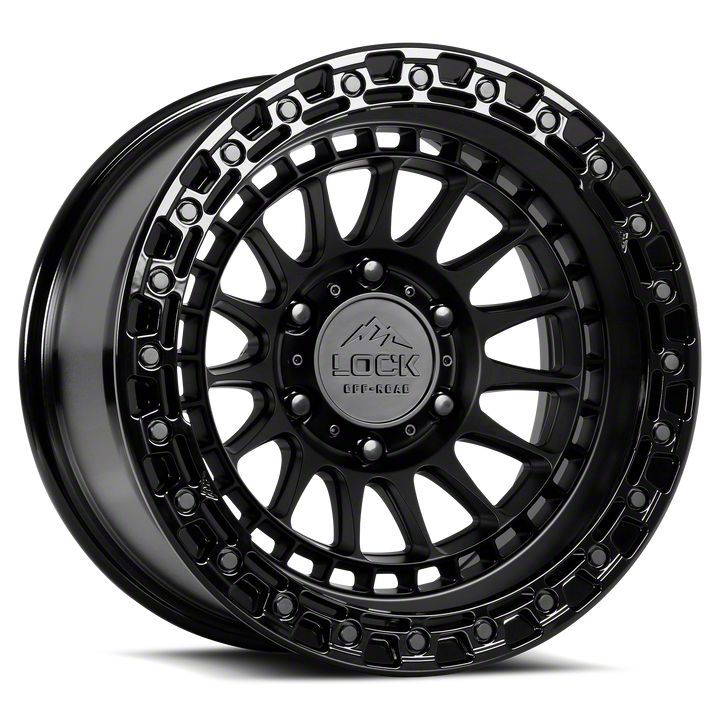 Lock Off-Road Mojave Matte Black with Gloss Black Ring 6-Lug Wheel; 20x9; 0mm Offset This wheel features sophisticated styling that enhances your vehicle's appearance with refined design elements and premium craftsmanship. Its distinctive aesthetic provides an upgraded look that complements a wide range of vehicles. The thoughtful engineering ensures a proper fit while delivering lasting visual appeal.