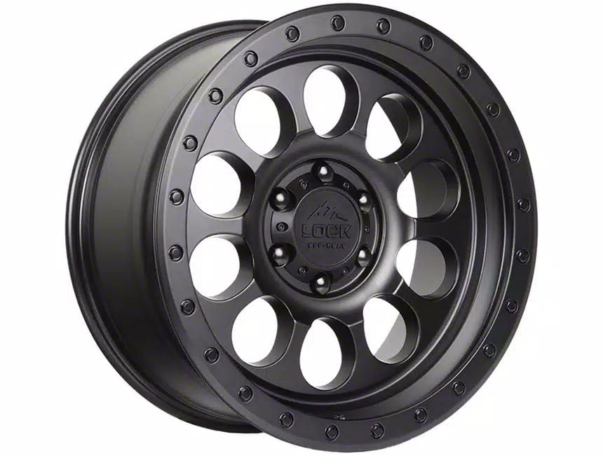 The 17x9 Lock Off-Road 50Cal Matte Black with Matte Black Ring 6-Lug Wheel; 17x9; 0mm Offset is completed in a high-quality matte black finish with accents for amazing good looks. There is a durable clear coat for added protection that can withstand daily driving.