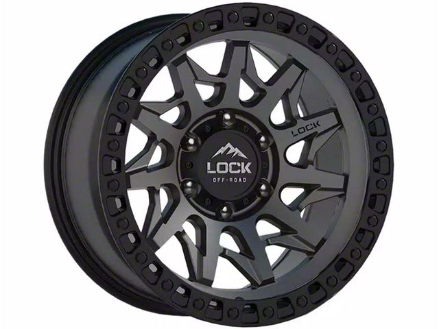 Lock Off-Road Lunatic Matte Grey with Matte Black Ring 6-Lug Wheel; 17x9; 1mm Offset The Lock Off-Road Lunatic Matte Grey with Matte Black Ring 6-Lug Wheel showcases a blend of race-inspired aesthetics, ideal for those seeking a premium and robust appearance. Its design complements various vehicle styles, adding sophistication.