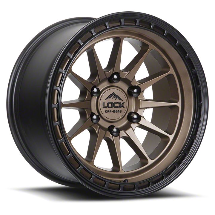 Lock Off-Road Baja Matte Desert Bronze with Matte Black Ring Wheel; 17x8; 40mm Offset delivers a bold and modern aesthetic, ideal for enthusiasts seeking a refined yet assertive look for their vehicle. With its standout design and distinct finish, this wheel enhances the vehicle's visual stance and street presence. The precise craftsmanship and premium aluminum build reflect Lock Off-Road's dedication to quality and distinctive design. Whether parked or in motion, this wheel draws attention with its clean, aggressive styling.