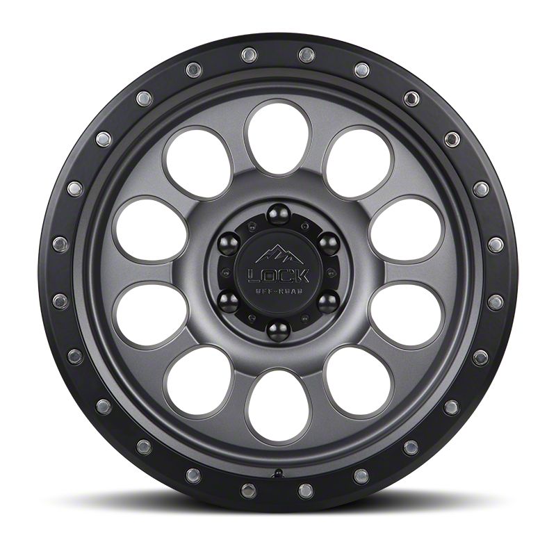 Lock Off-Road 50Cal Matte Grey with Matte Black Ring Wheel; 20x9; 0mm Offset (99-04 Jeep Grand Cherokee WJ)Find parts that fit my vehicle