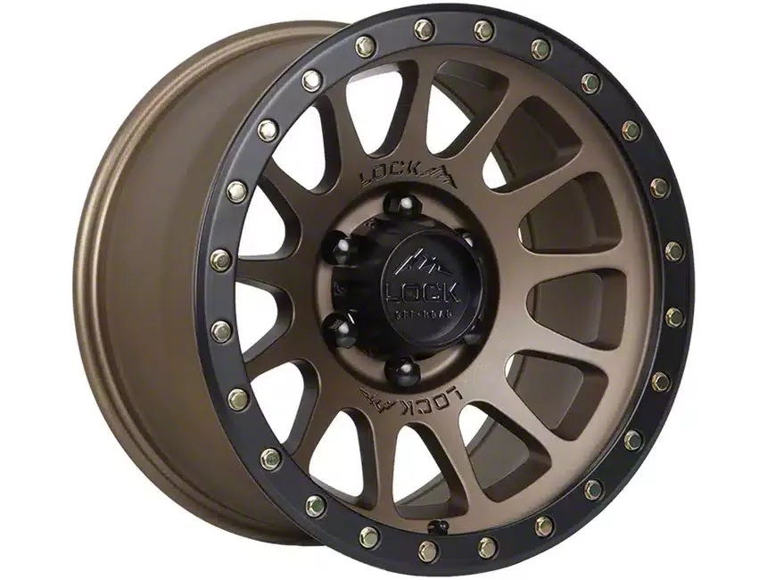 The 17x9 Lock Off-Road Yosemite Matte Desert Bronze with Matte Black Ring Wheel is completed using 3 special TACT-coated finishes of Matte Black, Matte Gunmetal, and Matte Bronze to provide amazing visual appeal and durability. That process couples with a contrasting black accent ring for an impressive appearance that will be the envy of everyone.