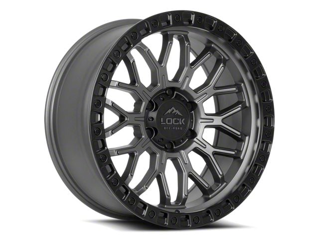 Lock Off-Road Combat Matte Grey with Matte Black Ring 6-Lug Wheel; 20x10; 18mm Offset delivers a bold and modern aesthetic, ideal for enthusiasts seeking a refined yet assertive look for their vehicle. With its standout design and distinct finish, this wheel enhances the vehicle's visual stance and street presence. The precise craftsmanship and premium aluminum build reflect Lock Off-Road's dedication to quality and distinctive design. Whether parked or in motion, this wheel draws attention with its clean, aggressive styling.