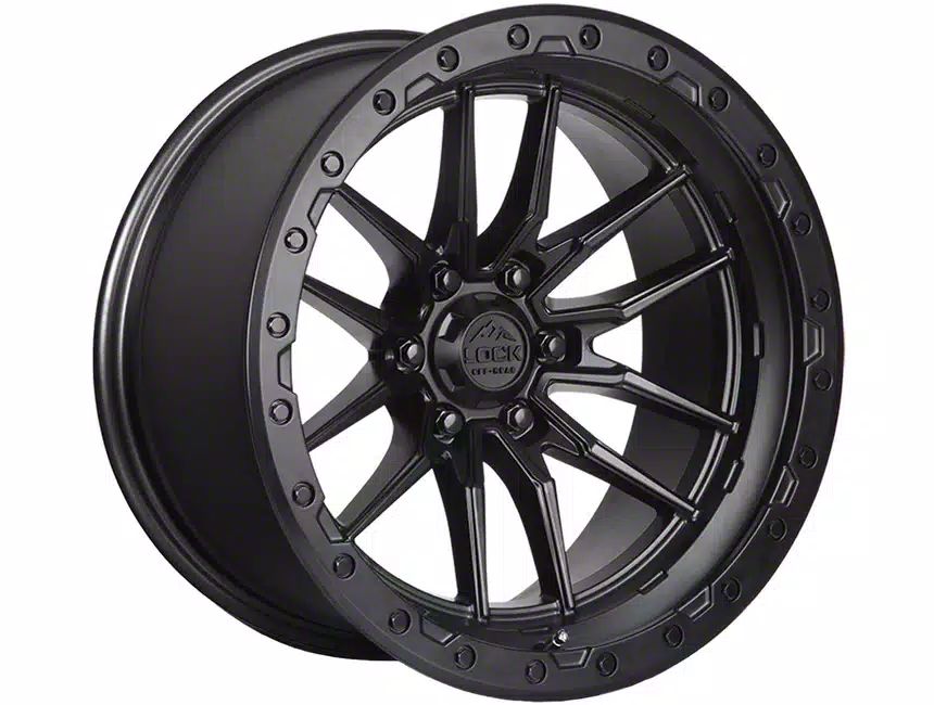 Lock Off-Road Krawler Matte Black with Matte Black Ring 6-Lug Wheel; 17x9; -12mm Offset exudes sophistication with its finish, offering a sleek and modern appeal to any vehicle it adorns. The design is meticulously crafted to enhance the aesthetic of your vehicle, giving it a distinctive and upscale look. Perfect for those seeking to elevate their vehicle's style, this wheel blends seamlessly with both contemporary and classic vehicle designs, making it a versatile choice for a wide range of vehicles. Its robust construction ensures durability, making it a reliable choice for drivers who value both style and quality.