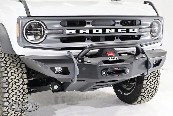 Application. The LoD Offroad Black Ops Shorty Winch Front Bumper; Bare Steel fits 2021-2026 Bronco models excluding Raptor models.