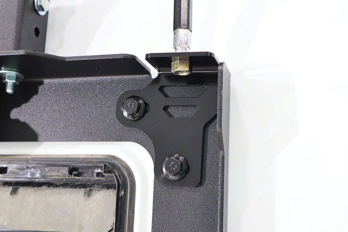 Durability and Reliability. Crafted for durability, the CB Antenna Mount is constructed with high-strength materials, ensuring it can withstand the rigors of off-road environments. The sleek Black Texture Powder-Coated Finish not only adds a rugged aesthetic but also provides excellent resistance against rust and corrosion. The mount seamlessly attaches to the Tire Carrier's Door Plate, utilizing stock bolts for a secure fit.