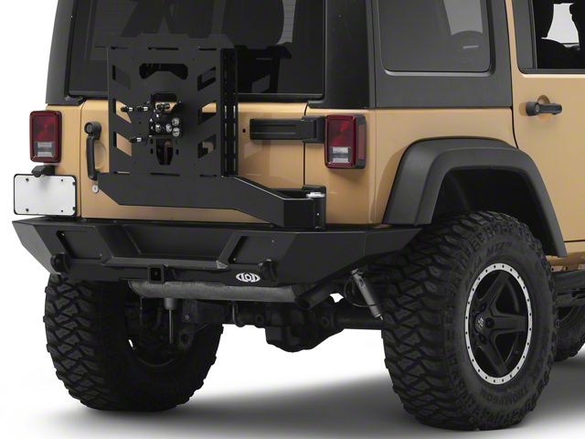 Application. This LoD Offroad Destroyer Full-Width Rear Bumper with Tire Carrier in Black fits all 2007-2018 Jeep Wrangler JK models.